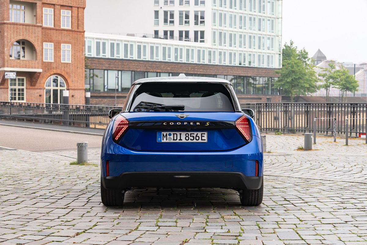 Kemudian lampu belakang MINI Cooper 2024 Electric juga menggunakan desain segitiga baru yang khas dengan tema bendera Union Jack (bendera Inggris Raya) yang lebih soft. Menghubungkan lampu belakang, ada garnish berwarna dark chrome yang memanjang dengan tulisan Cooper S.